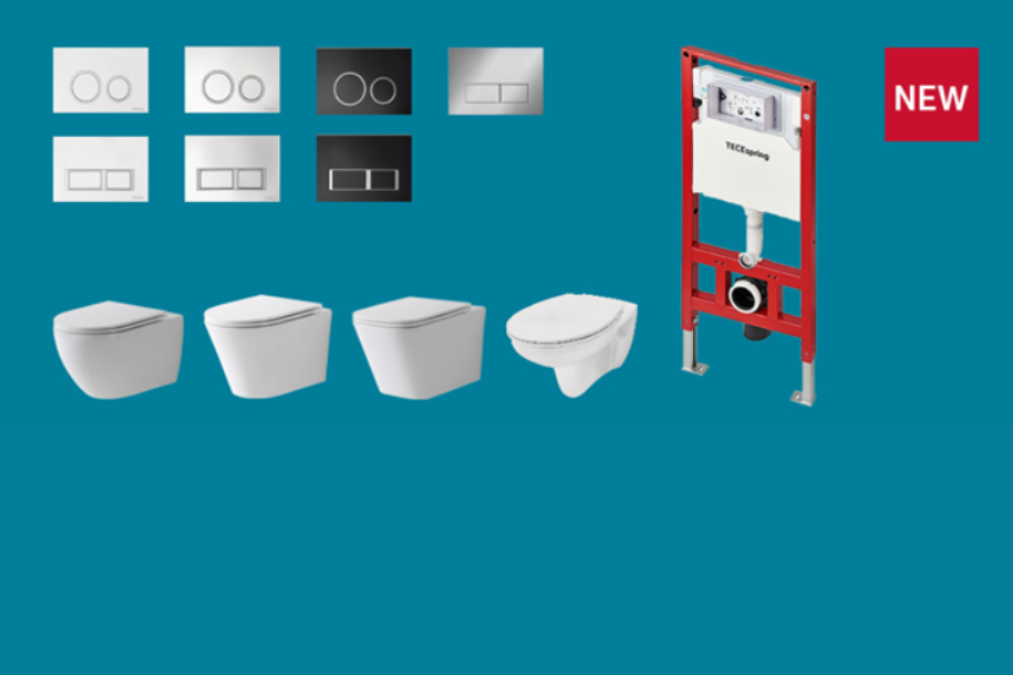 - Комплекты TECEspring c новыми подвесными унитазами Model R, Model K, Model S и Basic