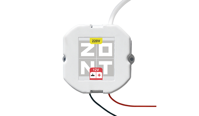 Компактный источник (блок) питания стабилизированного напряжения 12В для питания комнатных термостатов. Имеет автоматическое восстановление выходного напряжения после снятия короткого замыкания (КЗ) или перегрузки.