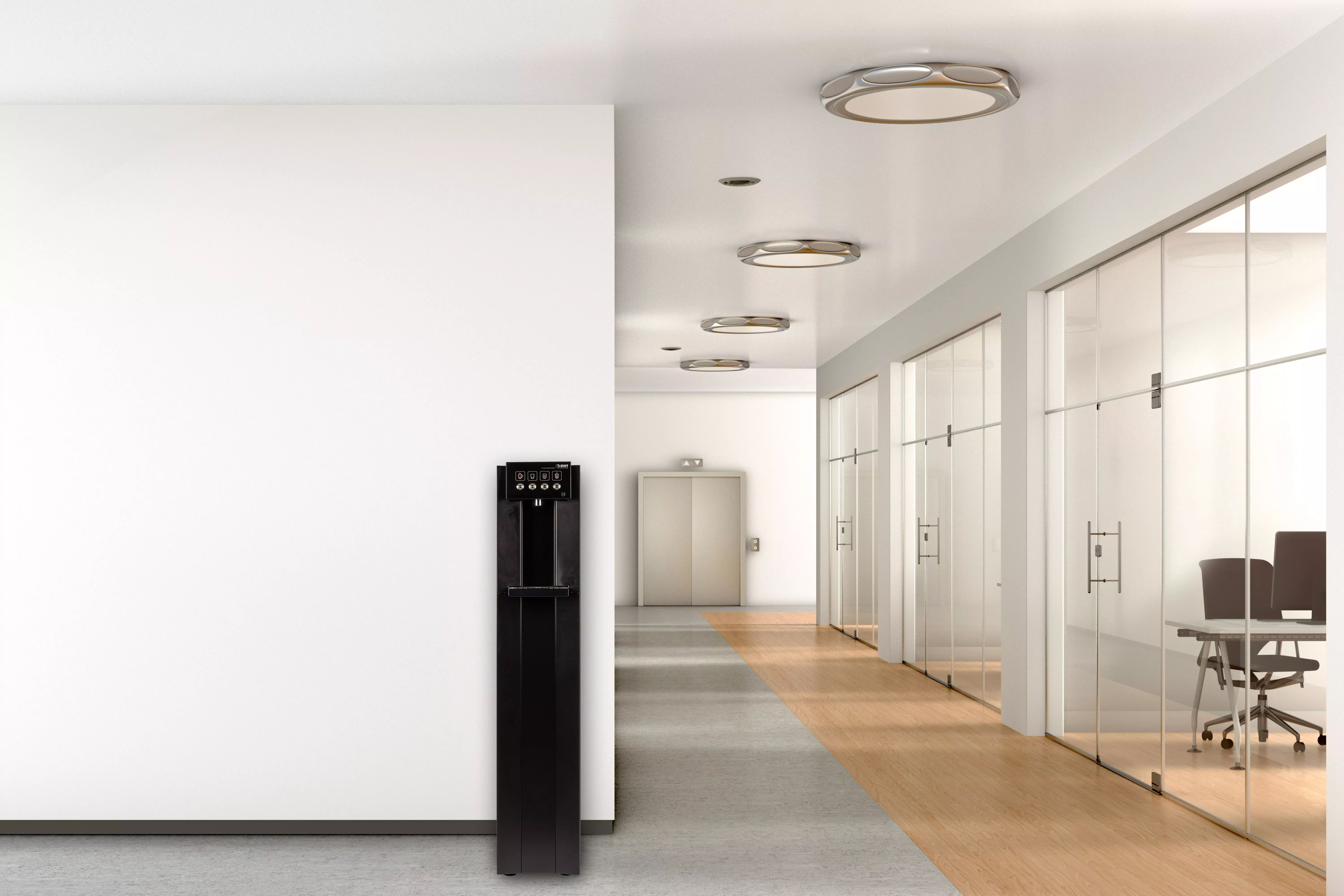 Устройство доступно в настольном или напольном исполнении, что позволяет гибко размещать его в любой зоне — от кухни до холла. Благодаря корпусу из нержавеющей стали с защитным покрытием, диспенсер устойчив к повреждениям, выглядит стильно и легко вписывается в современный интерьер.