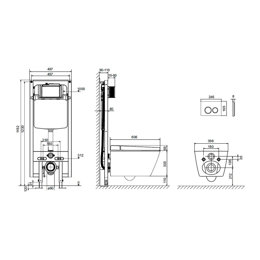 - Объем бачка 6 л. Настраиваемый объем малого смыва – от 2 до 5 л, большого – от 4 до 6 л.