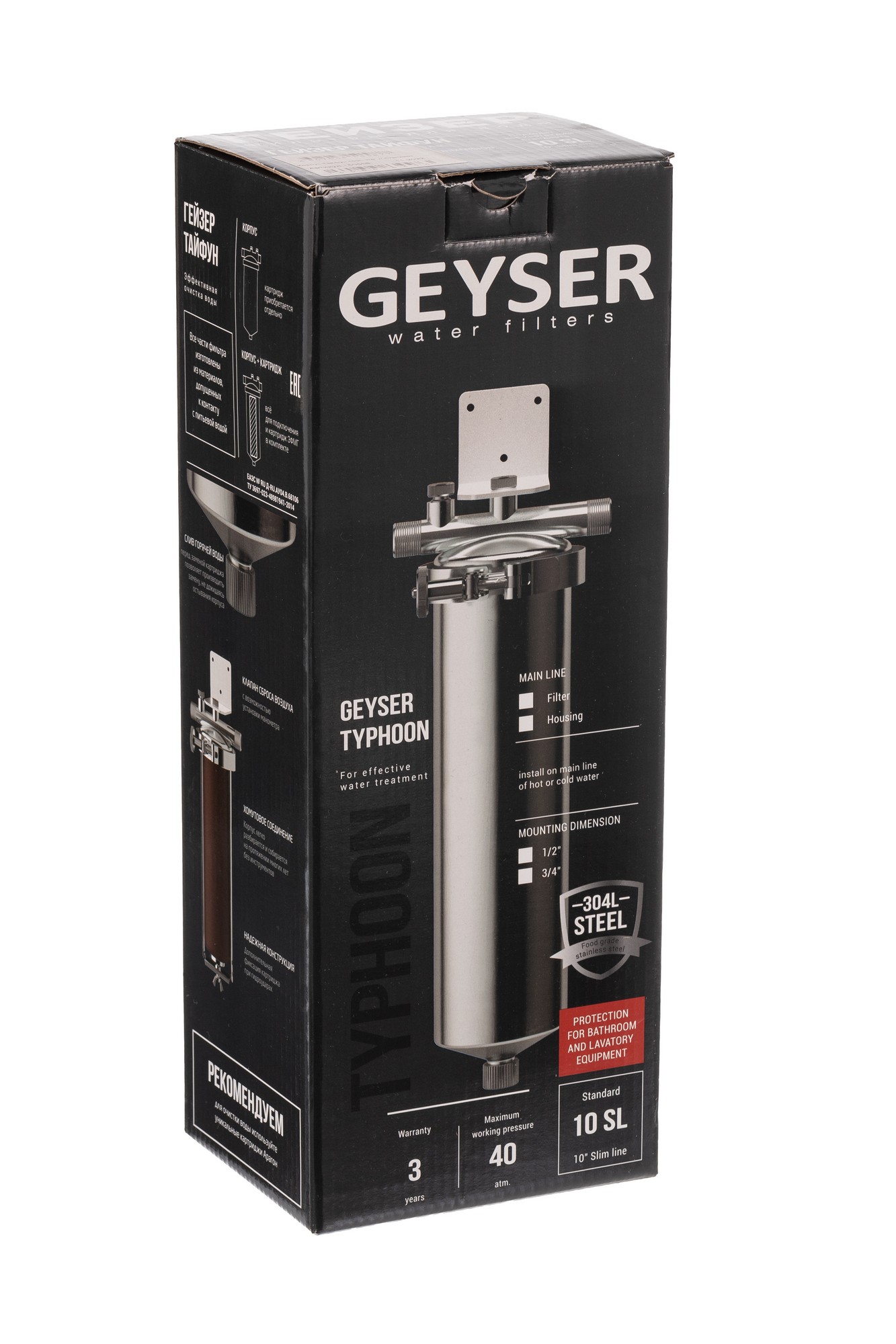 Корпус фильтра изготовлен из специальной нержавеющей стали марки 304L, что обеспечивает высокую надежность и долговечность фильтра. Благодаря этому, Гейзер Тайфун рассчитан на многолетнюю работу на горячей воде даже в условиях перепадов давления.