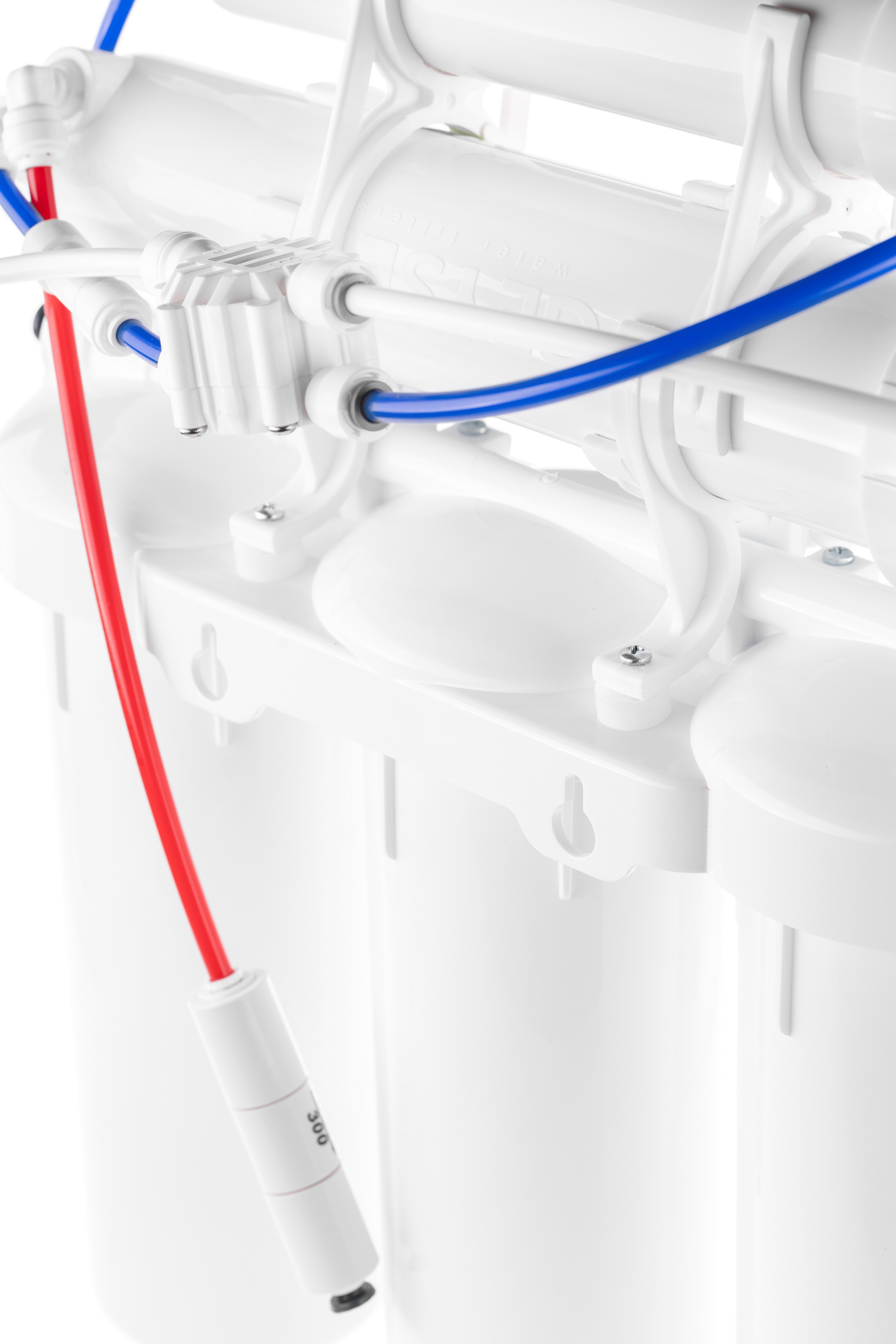 Система работает при давлении от 3 атм., производит до 7,5 л чистой воды в сутки и автоматически сбрасывает излишки в дренаж через защитный клапан при превышении давления свыше 4 атм.