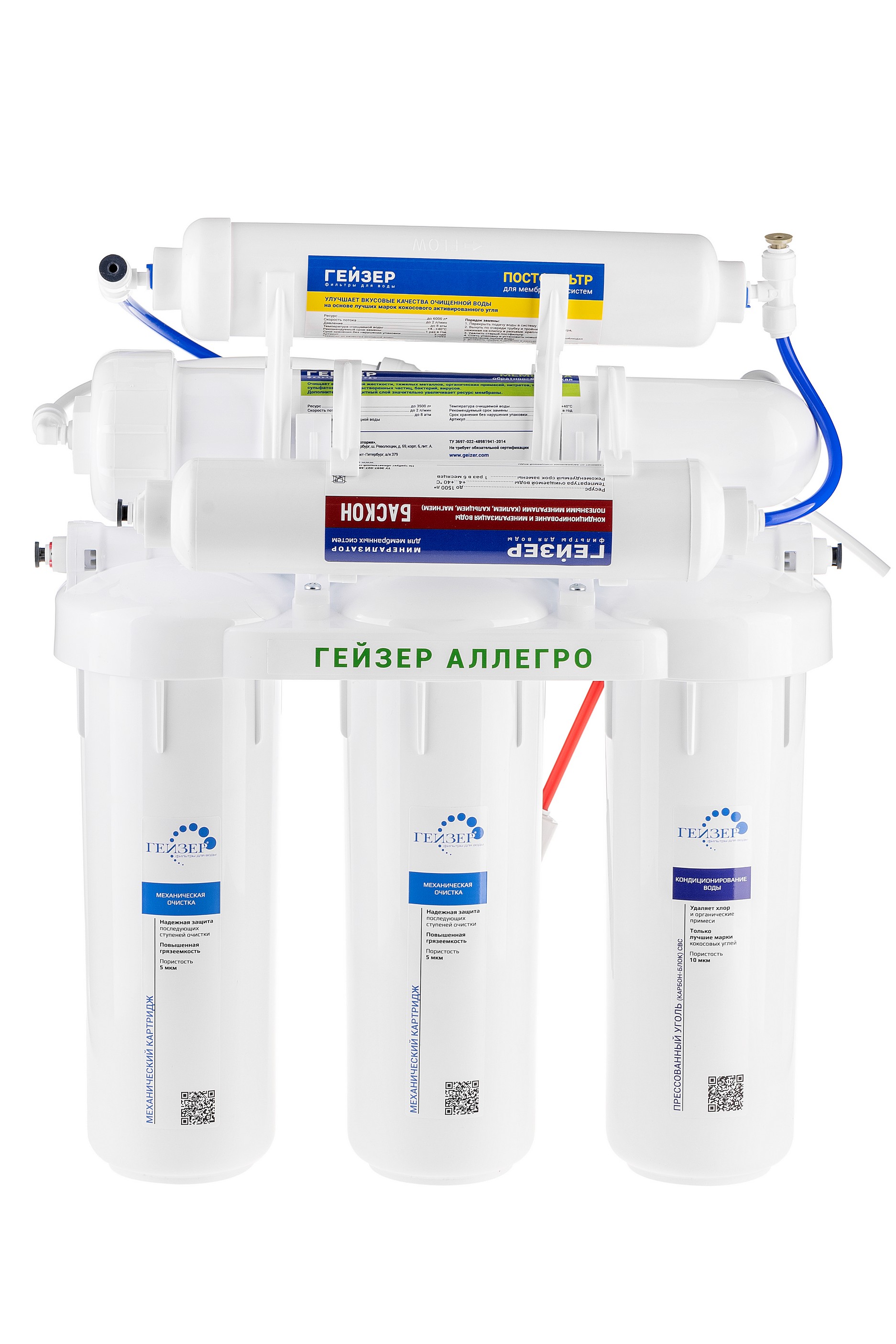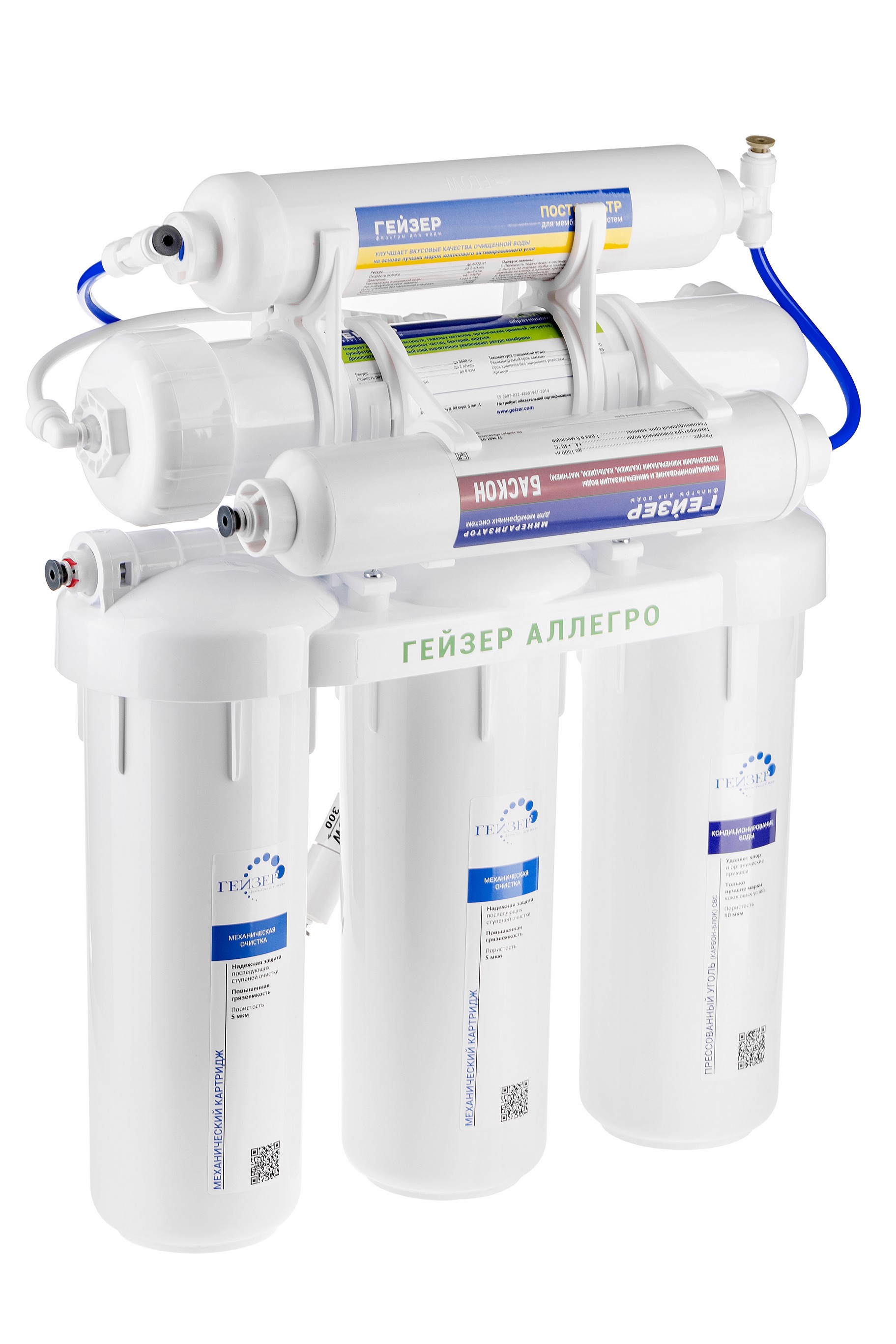 - Обратноосмотическая мембрана Geyser 1812-50 GPD — удаление всех примесей, включая бактерии и вирусы. Ресурс 1 – 3 года (зависит от качества воды).