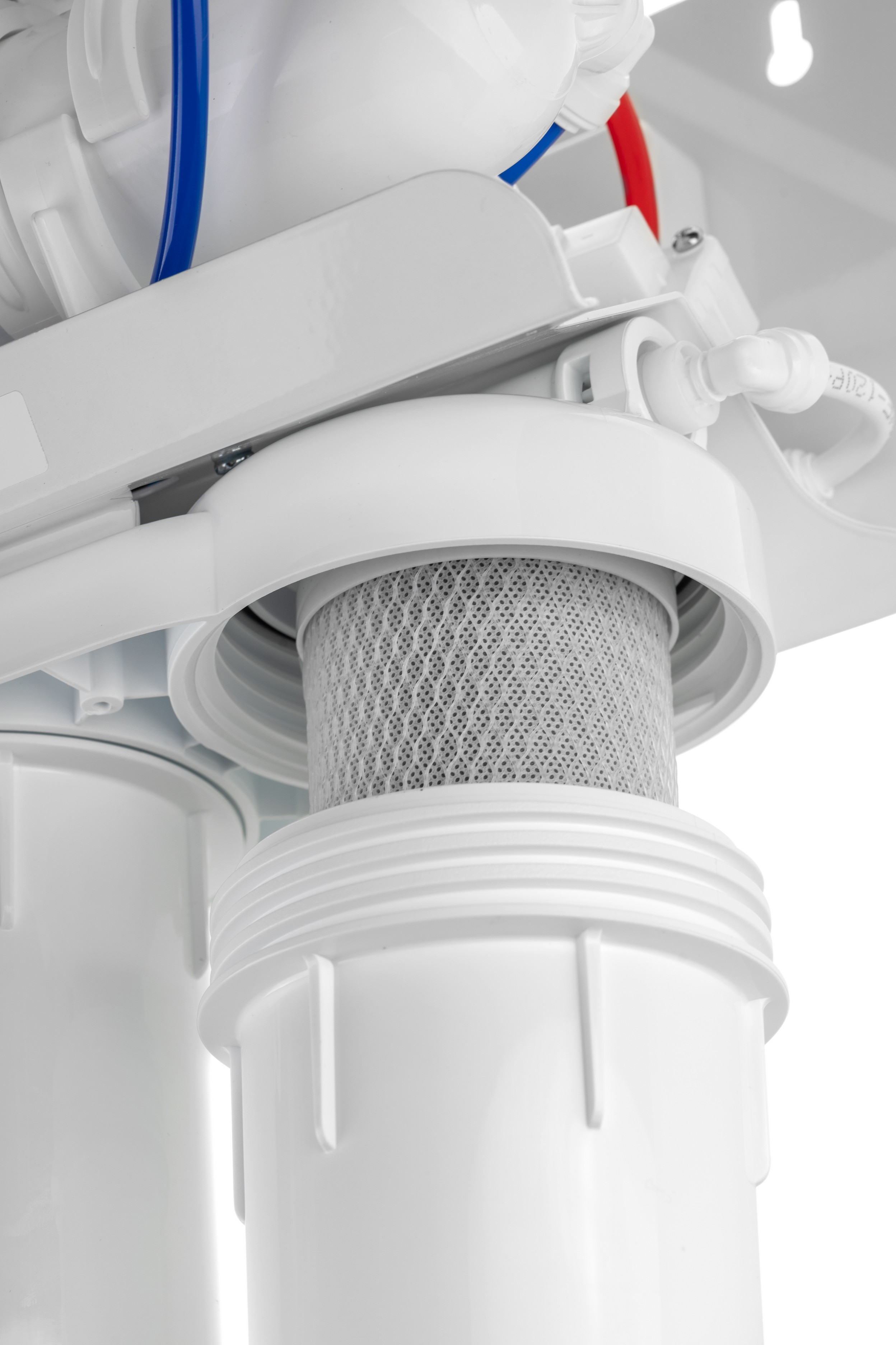 - Угольный постфильтр (активированный уголь) — улучшает вкусовые качества воды. Ресурс 12 месяцев.