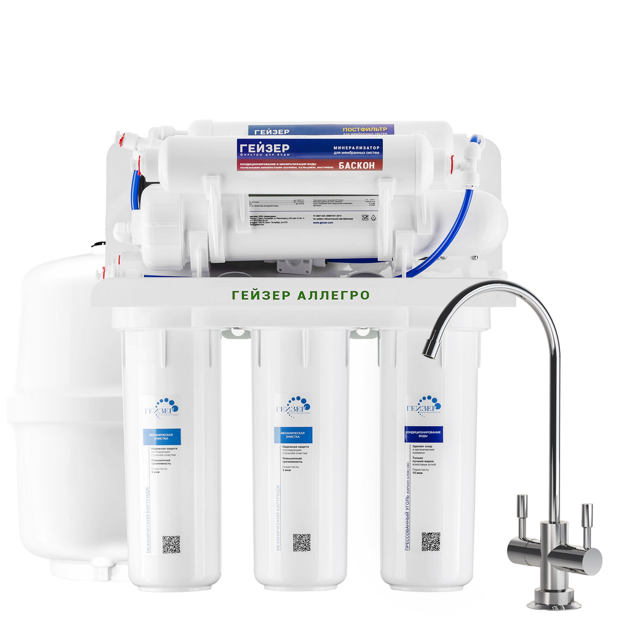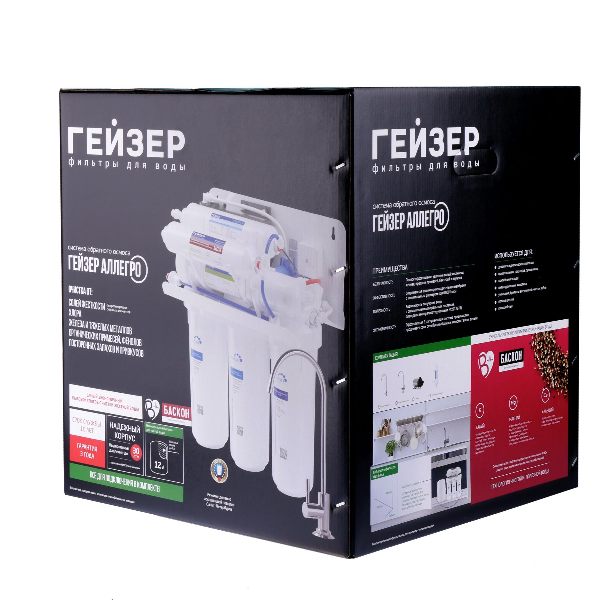 В комплект входит минерализатор «Баскон» для насыщения очищенной воды полезными солями кальция и магния до оптимального уровня жесткости воды — 1–1,5 мг–экв/л. Кран с двумя вентилями обеспечивает подачу воды с минералами (если Вы хотите выпить стакан воды, обогащенной полезными микроэлементами) или без них (для приготовления чая, кофе).